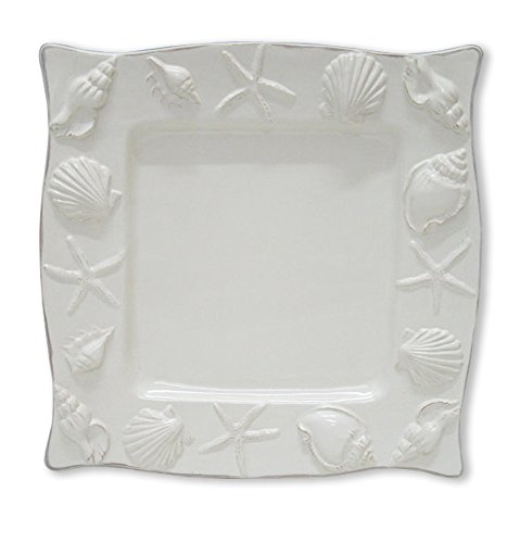 Blue Sky Ceramic Seahorse Square Plate, 11 x 11 x 1", White