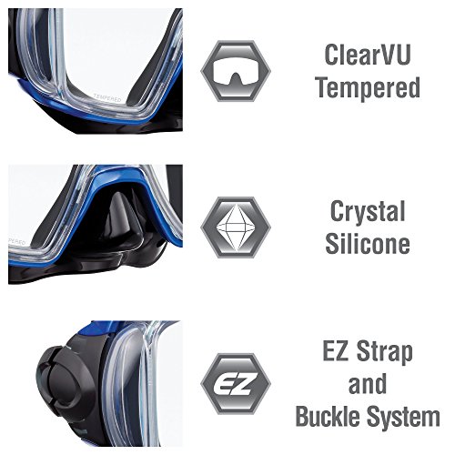 TUSA SPORT VISIO TRI-EX MASK SERIES SWIMMING COMBO, BLACK/METALLIC BLUE