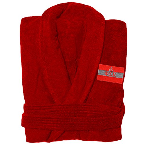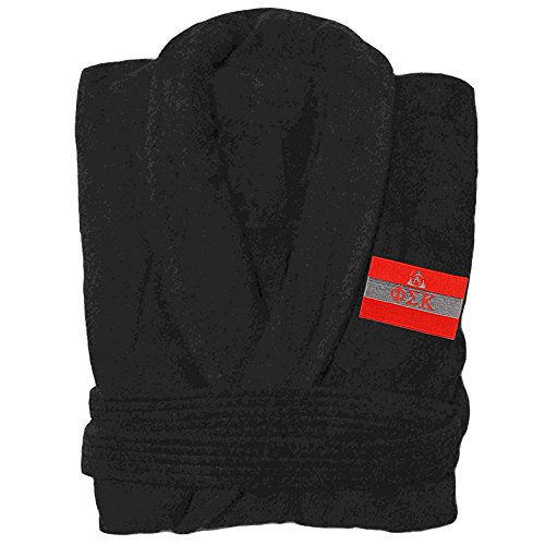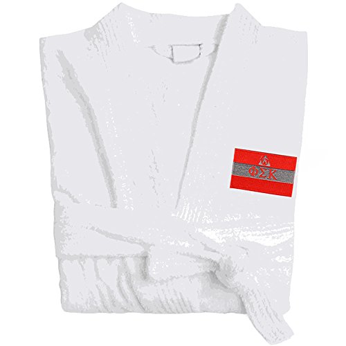 Binding : Apparel Product Description Phi Sigma Kappa Flag Patch Bathrobe. Fraternity Flag Emblem Bathrobe showcases your organization's Fraternity Flag. 12oz 100% Heavyweight cotton fraternity bathrobe with terry velour outside and looped cotton terry inside. Two belt loops, two patch pockets. 48" Mid calf length. Embroidered with your groups flag