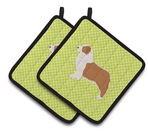Caroline's Treasures Australian Shepherd Dog Checkerboard green Pair of Pot Holders BB3833PTHD, 7.5HX7.5W, Multicolor