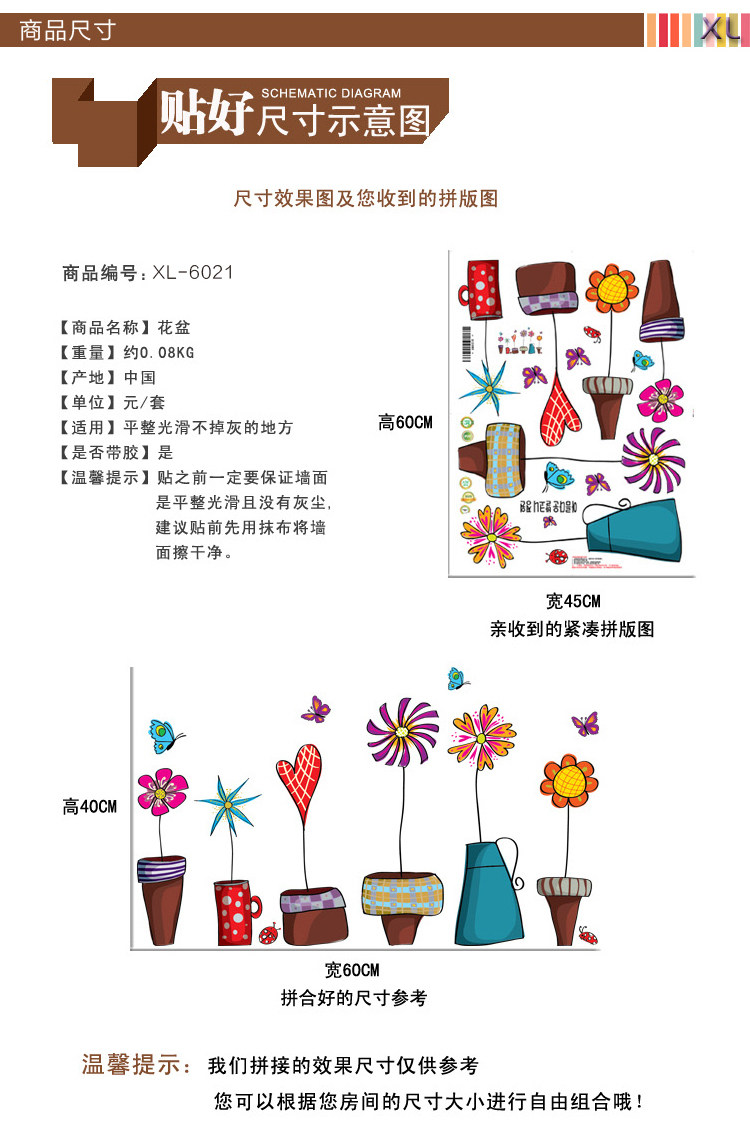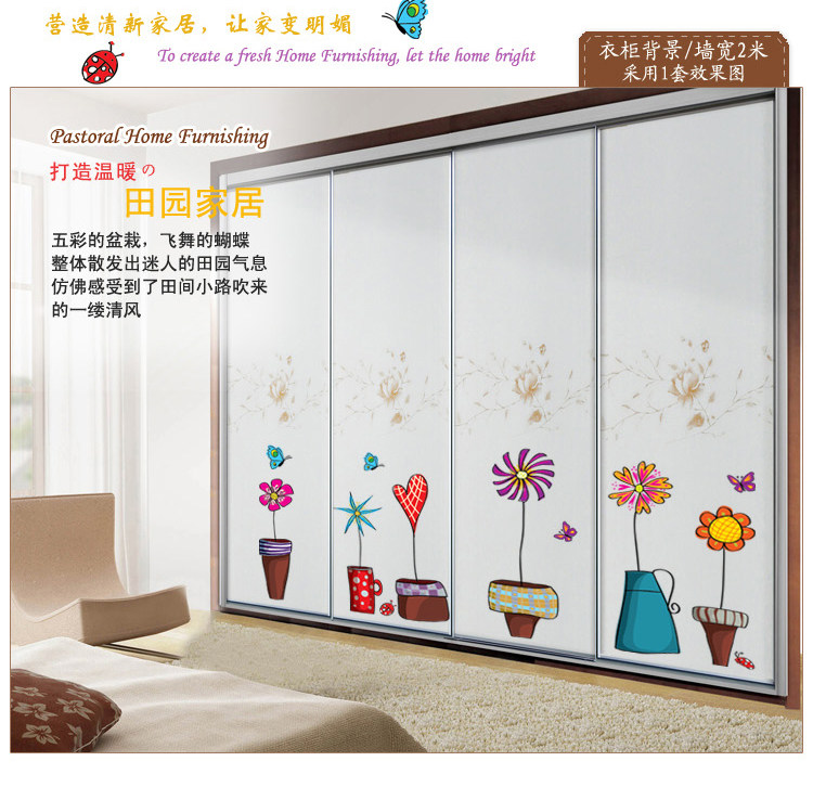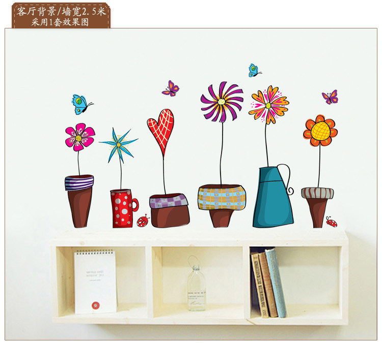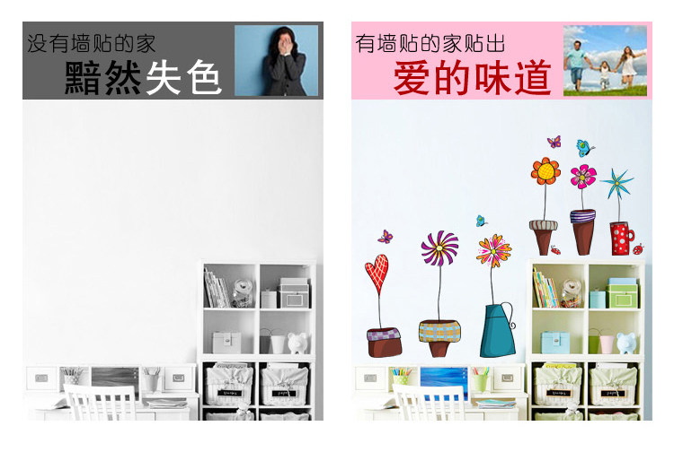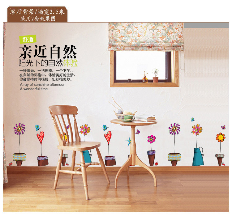 店铺橱窗装饰客厅玻璃自粘墙贴纸贴画植物小花盆栽踢脚线窗花墙贴