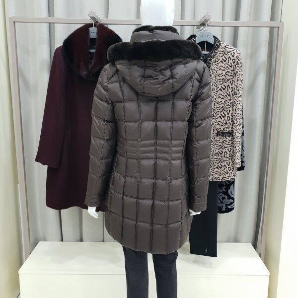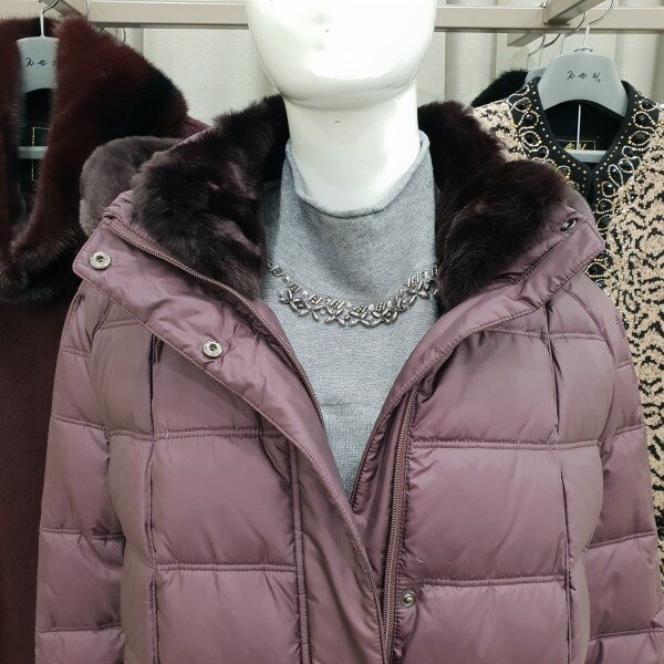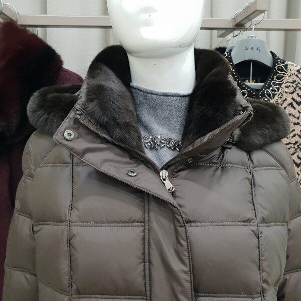 후드와 네크라인에 렉스퍼가 트리밍되어 고급스러움을더해준 구스다운점퍼