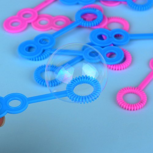 -. Feature : 2 Bright colors bubble wands: 50 pieces of bubble wands in 2 colors, blue and pink, each color for 25 pieces, bright colors can attract you and your children's eyes / Material: these wands are made of plastic material, with smooth surface; Good and cool tool for blowing bubbles, enjoy the fun bubbles bring with your children / Bubble wands size: each bubble wand size is approx. 76 x 22 mm/ 2.99 x 0.86 inch; Easy to use: this bubble stick dipping a little bubble water can blow out a lot of bubbles / Wonderful bubble sticks: they can work for intellectual development, hands and feet, interest training, parent-child communication, interactive toys, grasping, etc. / Quantity: 50 pieces of bubble wands in 2 colors, each color for 25 pieces, enough to use, also can use it in many kinds of parties