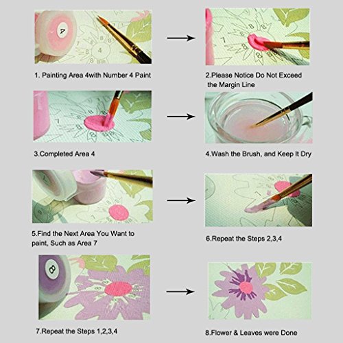 Package Includes: 1X Pre-printed Linen Canvas(wood frame not included) 1X Non-toxic Acrylic Paints 3X Nylon Brushes(1 small, 1 medium and 1 flat) 1X Hook