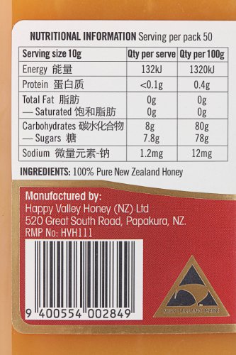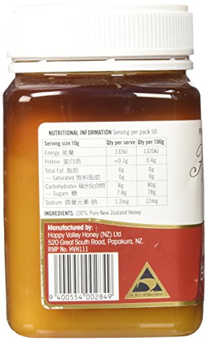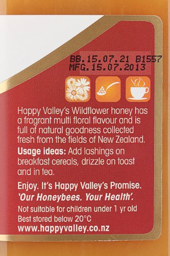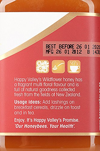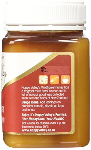 -. Binding : Grocery -. Brand : Happy Valley Honey -. Feature : 100% pure and natural honey, harvested from the wild fields of New Zealand / Golden in color with a full-bodied flavor and velvety smooth texture, this honey features caramel, malt and floral flavors / Happy Valley Wildflower Honey has a pearl-like appearance with a smooth and silky finish that spreads like butter at room temperature and does not drip. No ingredients or fillers have been added to this pure honey / A rich and flavorful honey that is delicious spread on freshly baked breads or used as an ingredient in marinades and sauces / All Happy Valley honeys contain 100% New Zealand honey and are packed full of flavor, loaded with vitamins and brimming with spoonfuls of nutritional benefits. -. Label : Happy Valley Honey -. Manufacturer : Happy Valley Honey -. PackageQuantity : 1 -. ProductGroup : Grocery -. ProductTypeName : GROCERY -. Publisher : Happy Valley Honey -. Studio : Happy Valley Honey -. Title : New Zealand Wildflower Honey