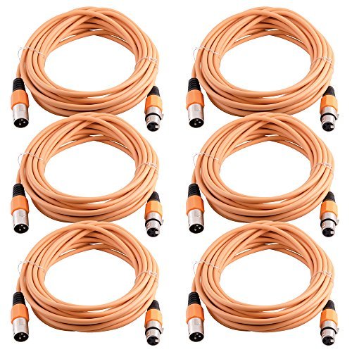 Product Description Model #: LEXLR-25Orange (6 Pack) Cable Type: Orange 25 Foot XLR Mic Cables Application: Connecting Pro Audio Components that Require a 3-Pin XLR Connection Connectors: XLR Male to XLR Female Features: Balanced and Shielded, Strain Relief on Both ends, Heavy Duty Reliable XLR Connectors Color: Orange Length: 25 Feet each Weight: 0.76 lbs each Warranty: One Year Warranty 0