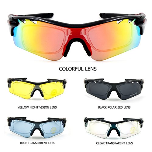 5 Shatterproof Lenses: The Main Black lens is Polarized Lenses against Strong Sunlight, the Other 4 Lens are Colored Sunglasses for a bunch of different environments