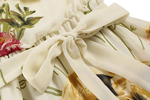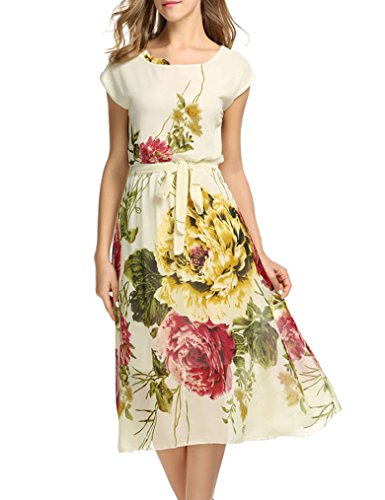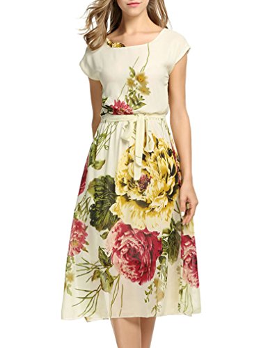 OURS Womens Short Sleeve Vintage Floral Printed Midi Dress with Belt