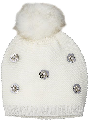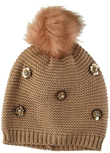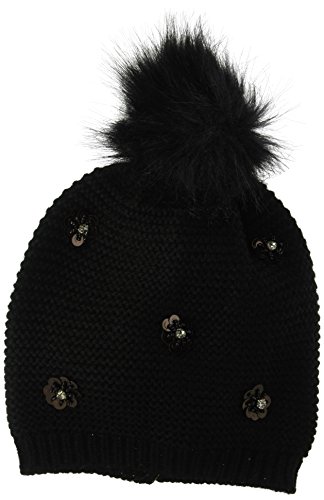 Product DescriptionKnit beanie with pom and small individual beaded floral details0