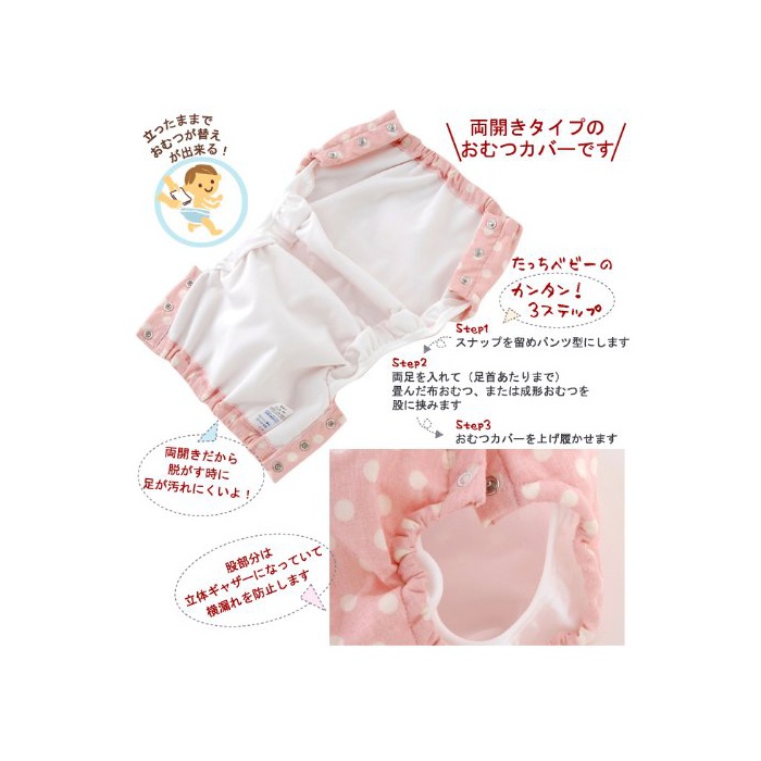 양싸이드에 스냅을 붙인 양쪽으로 열림 타입에,팬츠형 (이므로)그래서 섰던 채로 기저귀 커버를 신게 할 수도 있고, 걷기 시작한 베이비의 기저귀 교환도 편안하게입니다♪