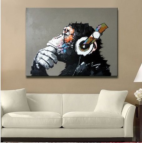 -. Title : QICAI Modern Gorilla Monkey Music Oil Painting Wall Painting Canvas Painting Home Decor Oil on Canvas