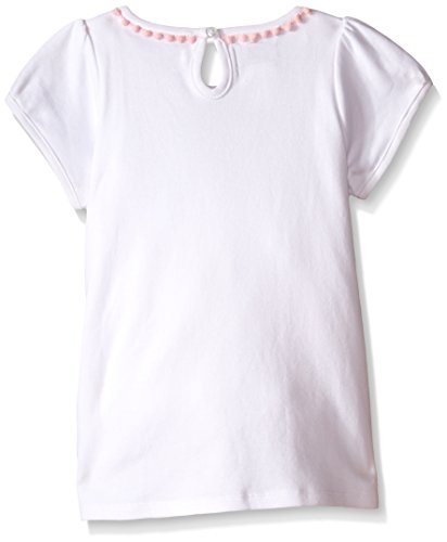 Cotton interlock top with puff sleeves, pom-pom trim along neckline and keyhole back features poplin applique with pom-pom nose, jeweled eye and dimensional nylon flower tail.Feature