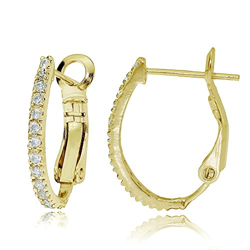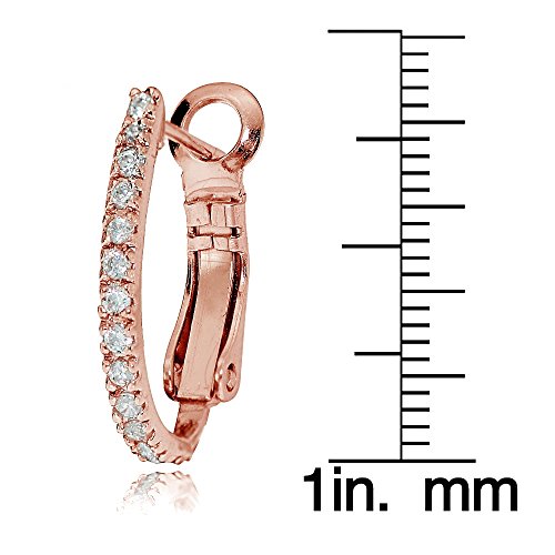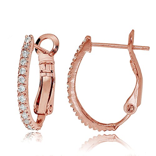These chic earrings feature sparkling CZ stones, prong-set in 18mm oval J-hoops. The earrings are crafted of rose gold tone over sterling silver and are secured with clutchless backs.
