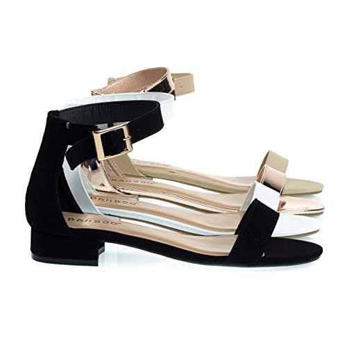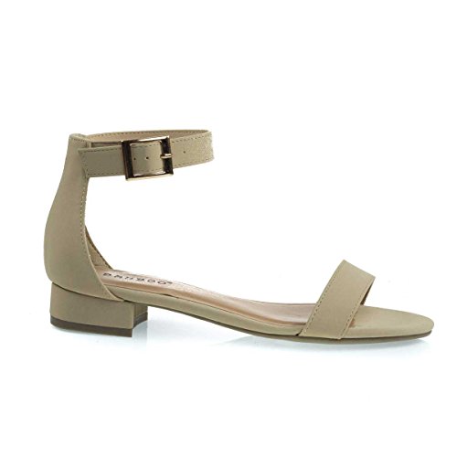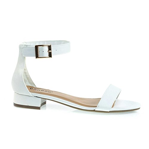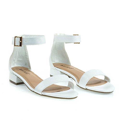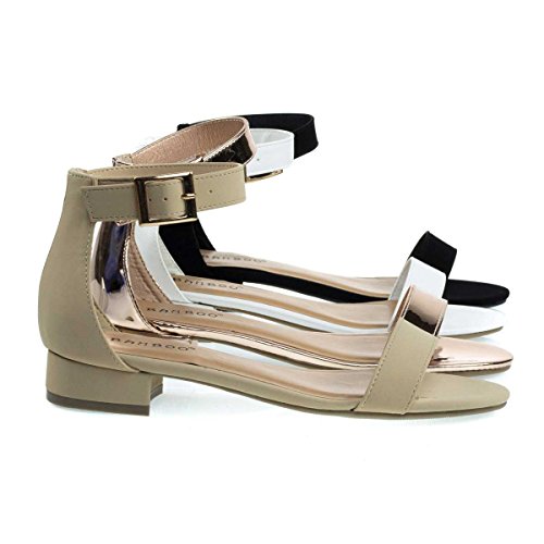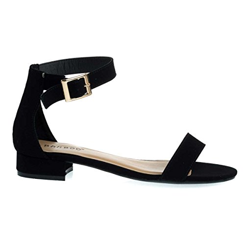 Binding : Apparel Product Description Satisfy your fashion need with these gorgeous low block heel sandal featurning chunky half moon heel, single foot strap, closed heel counter, adjustable ankle strap and lightly padded sole. Customers reported that they need half a size bigger. About This Shoes :Satisfy your fashion need with these gorgeous low block heel sandal featurning chunky half moon heel, single foot strap, closed heel counter, adjustable ankle strap and lightly padded sole. Customers reported that they need half a size bigger. Brand - Bamboo Colors Available: Black, Nude (beige) Rose Gold, White Occasion: Casual Shoe Type: Sandals Shoe Style: Sandals Inner Lining: synthetic Heel Height In Inches - 1 Heel Style - Block Toe Style - open-toe Platform Height In Inches - 0.25 Shaft Height In Inches - n/a Circumference Opening - n/a Strap Type - ankle-strap Sole - manmade All Man Made Material unless otherwise stated. Computer/Phone/Table monitors might show color differently because of its quality or calibration, we suggest you look at the photo in at least 3 monitors if you need exact color match of your shoes. 0