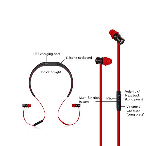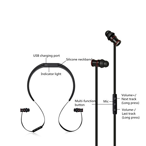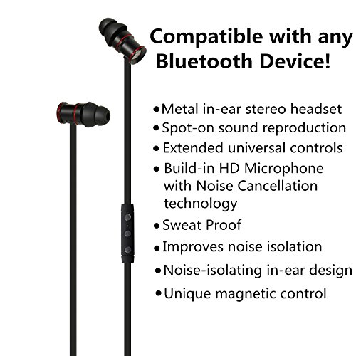 -. Feature : BLUETOOTH V4.1 TECHNOLOGY : Easy and fast pairing with smartphones, tablets and other Bluetooth enabled music devices; Offer you impressive dynamic sound,the operating distance is far more than 15 meters.Connect 2 devices at the same time and don't miss your calls when you have 2 cell phones. / SWEAT PROOF : Protected by Liquipel Nano Coating your Buds withstand sweaty workouts and will survive accidental dropping into water. / MAGNETIC DESIGN : Built-in magnets let you attach the two headphones together when not using, and wear like a necklace around your neck, a convenient way to carry around when you don't need them. / LIGHT WEIGHT : Ultra light weight does not cause any burden to the ears, thus providing lasting wearing comfort. / WHAT YOU GET: Sport Bluetooth Earbuds, broken in 90 days change a new & 18-month worry-free warranty, and friendly customer service.