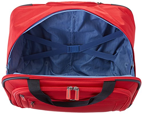 -. Binding : Apparel -. Brand : DELSEY Paris -. ClothingSize : One Size -. Color : Red -. Department : unisex-adult -. Feature : Carry on size fits in the overhead compartment and underneath the seat of most u.s. Domestic airlines. Lightweight and durable micro ballistic fabric with vapor barrier for long lasting use / Two front zippered pocket offers extra storage for small items and last minute add-ons. Main compartment comers with tie-down straps for overnight packing / Holds a 15.6 computer and has a wet pocket. Smart band slide over the handle tubes of a larger suitcase for easy mobility. Telescoping pull handle with "one hand operation" push button to lock and release / Easy to grab bottom handle is great for overhead compartment or car trunk lifting. Protected and recessed velocity in-line skate wheels. Worldwide limited 10-year warranty / 17x7x13" -. Label : Delsey Lage, Inc. -. Manufacturer : Delsey Lage, Inc. -. Model : 403281451 -. PackageQuantity : 1 -. ProductGroup : Apparel -. ProductTypeName : LAGE -. Publisher : Delsey Lage, Inc. -. Size : One Size -. Studio : Delsey Lage, Inc. -. Title : Delsey Lage Helium Sky Trolley Tote