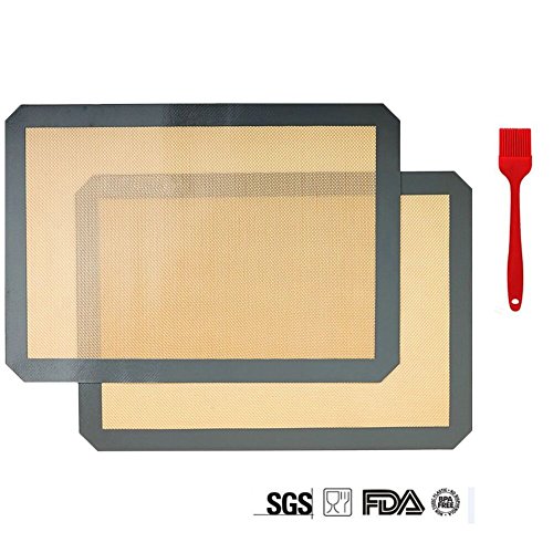 Silicone Baking Mats Non Stick - Rolling Silicone Baking Sheet, Set of 2 Cooking Mats, FDA-Approved, Size 16.5" x 11.6" (Black)