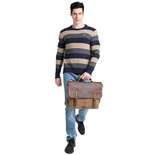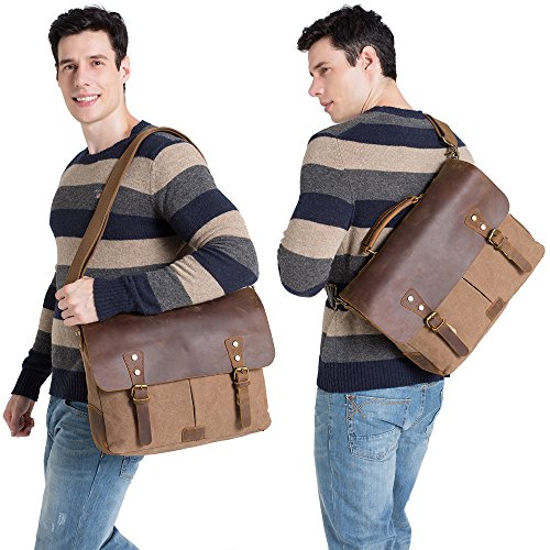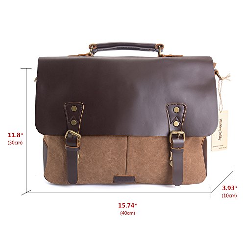 -. Title : Leather Vintage Messenger Bag Large Size for 15.6 inch Laptops, WalkingToSky Canvas School Satchel Bag