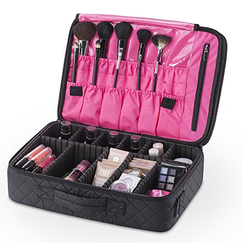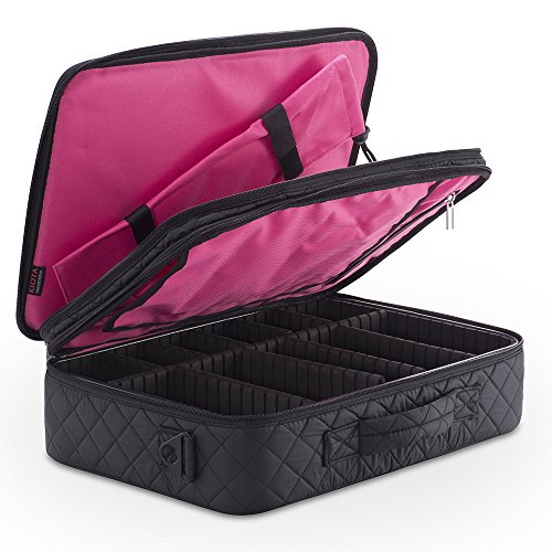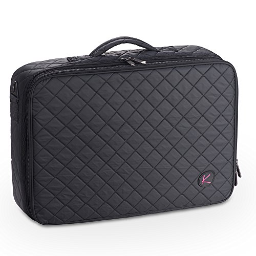 KIOTA Dual-Layer Professional On The Go Portable EVA Makeup Train Case Cosmetic Travel Storage Organizer Bag with Dividers and Brush Pockets - Midnight Black