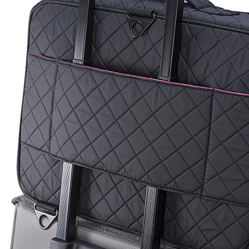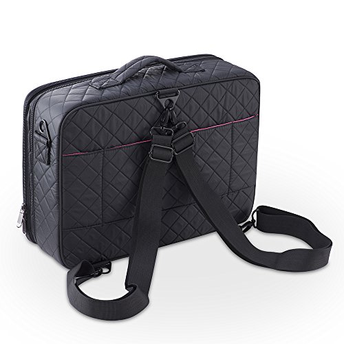 Top Handle, detachable & adjustable shoulder strap make it easy to carry around; Considerate back design can fasten the makeup case to the draw bar of your rolling suitcases, perfect for both daily and traveling use