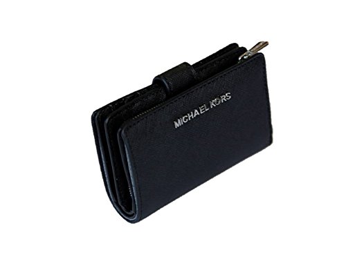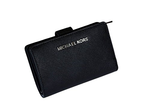 (Michael Kors)/Accessories/Wallets, Money Key Organizers/DIRECT FROM USA/Michael Kors Jet Set Travel Bifold Zip Coin Leather Wallet - Black/silver