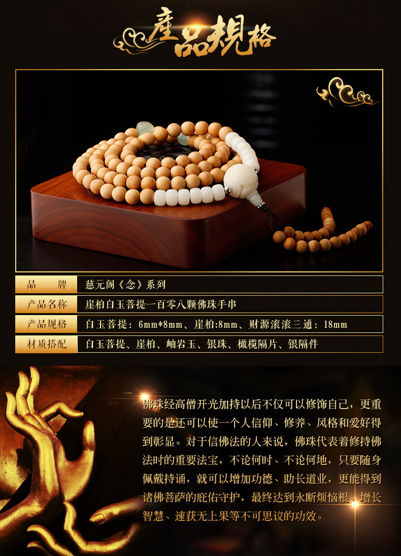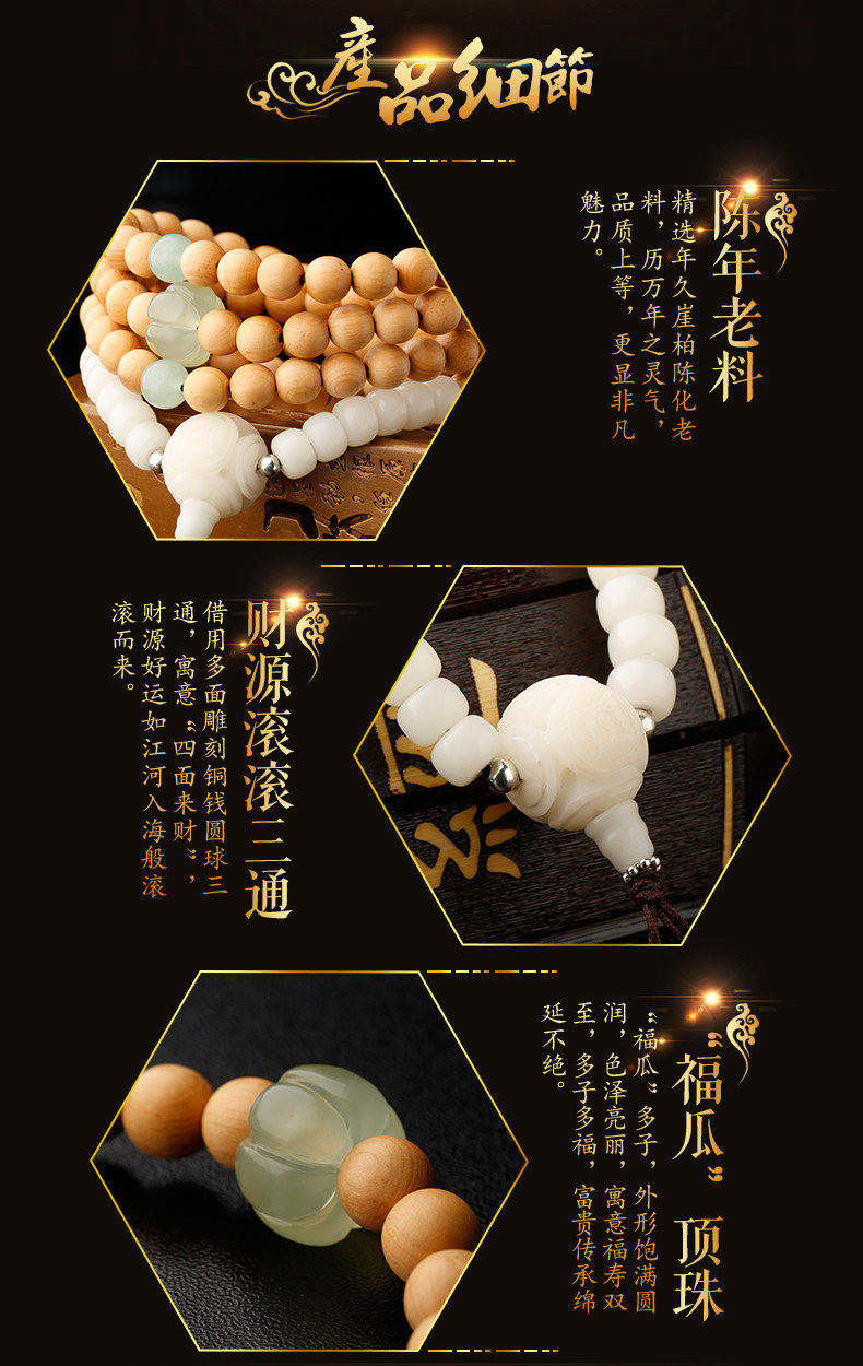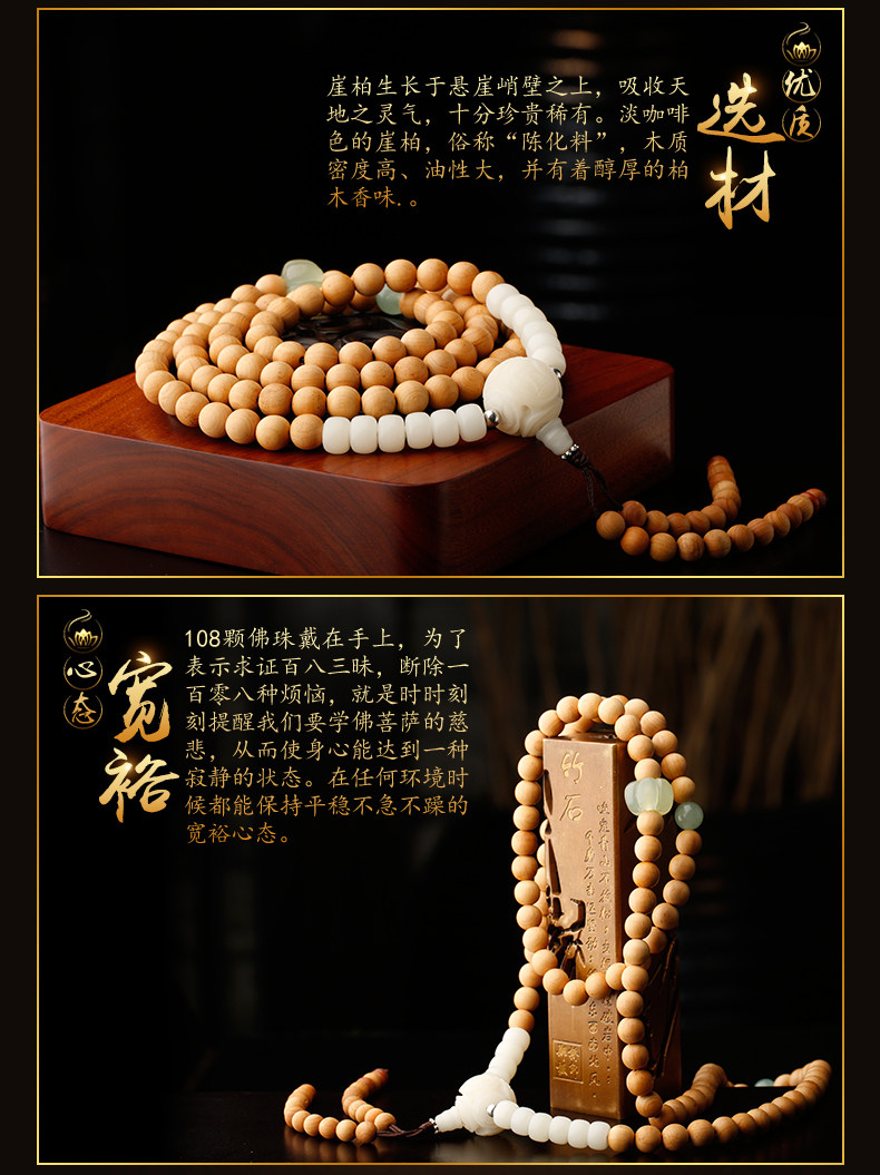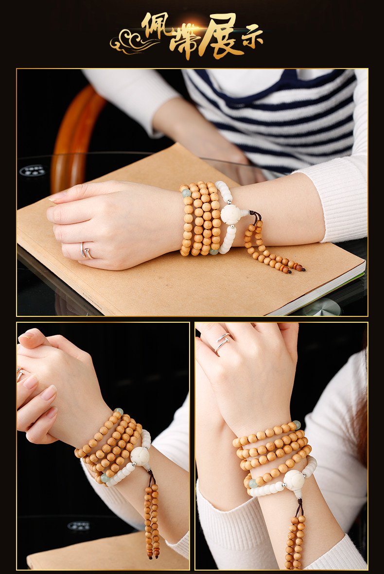 开光崖柏佛珠手链男女款白玉菩提饰品手串108颗念珠平安礼