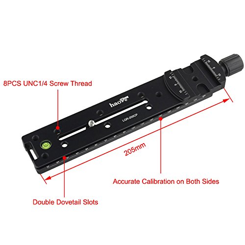 Haoge 200mm Nodal Slide Double Dovetail Focusing Rail Plate with Metal Quick Release Clamp and 60mm Plate for Camera Panoramic Panorama Close Up Macro Shoot fit Arca Swiss RRS Benro Kirk