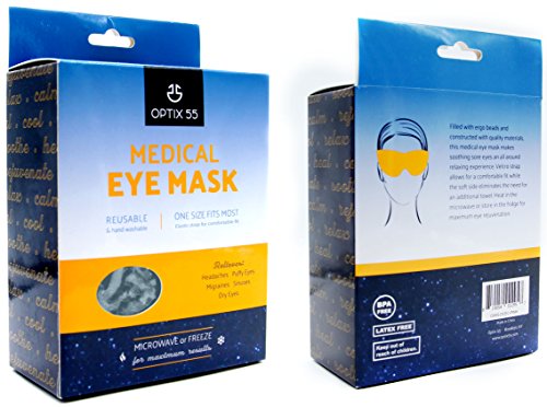 Studio : Optix 55 Publisher : Optix 55 Binding : Misc. Product Description A SOOTHING, CUSTOMIZED MASK Do dry, itchy eyes from allergies interfere with your quality of life? Need a soothing treatment to ease pain post-operation? No matter what your eye ailment, it's time to give your windows to the world some pampering. While a regular ice pack from the freezer may relieve achy joints, it does not suffice for the delicate periocular area skin, which is 10 times thinner than the skin on the rest of the face. This Eye Mask by Optix 55 features flexible ergo beads that hug your eye area for maximum skin contact a customized fit. The gel beads also retain their temperature longer than a wet towel compress for maximum effectiveness throughout the entire length of wear. Both microwave freezer safe, this 2-in-1 eye mask provides both heat cool relief. Lay back, relax rejuvenate! PRODUCT FEATURES: ? Reusable ? Elasticated Strap ? Microwave Freezer Safe ? One Size Fits Most ? Hand Washable HOW TO USE To create a heat compress, microwave for 20 seconds test the temperature with your finger before placing over the eyes. If the mask feels too hot, wait 2 minutes before re-testing. If a hotter mask is desired, heat for an additional 10 seconds. Do not exceed a maximum heating time of 40 seconds. This mask retains heat for approximately 30 minutes. If re-used within this time period, reduce microwave time by 10 seconds. For a cool compress, place the mask in the freezer for 1 hour or store in the fridge. OPTIMAL OPTICAL SATISFACTION Here at Optix 55, we create eye solutions that are not only effective, but also customized. That's why we offer this Eye Mask in a choice of 4 colors: - Grey - Pink - Blue - Transparent We back up our products with a 100% satisfaction guarantee. If for any reason you are not completely happy with your purchase, please contact a customer representative and let us improve your experience! 0