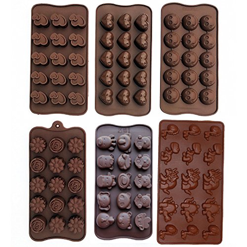 Value Pack of 6 different chocolate molds. All molds are 100% silicone and can be used in an oven.