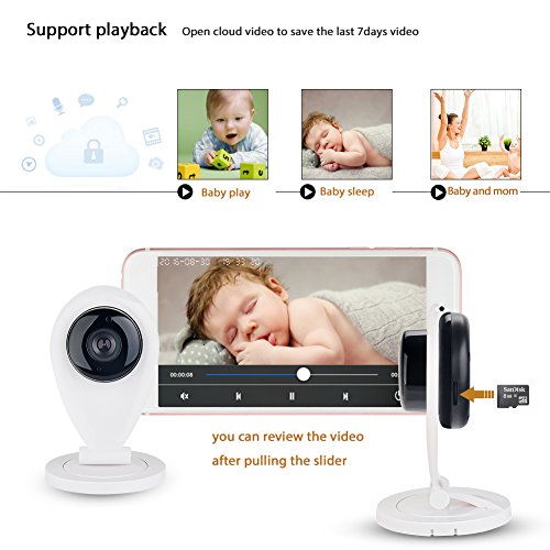 -. Binding : Baby Product -. Brand : GEEDIAR -. Feature : Quite baby monitor camera, Having a option to turn off sound alerts. / Support SD card and smartphone recording, never miss any important steps with the one you matters most. / Dimensions (W x H x D): 67mm x 115mm x 35mm / Resolution supported: 1280x720p / Motion detection function and remote real-time live voice & video: Receive alerts when the camera detects motion and remote real-time live video stream straight from your home to your smartphone, perfect to be as home security camera. -. IsAdultProduct : 0 -. Label : GEEDIAR -. Manufacturer : GEEDIAR -. MPN : HG00893US -. PackageQuantity : 1 -. PartNumber : HG00893US -. ProductGroup : Baby Product -. ProductTypeName : BABY_PRODUCT -. Publisher : GEEDIAR -. Studio : GEEDIAR -. Title : Mini Baby Video Monitors Wi-Fi Wireless Surveillance Camera With 2 Way Audio Talk