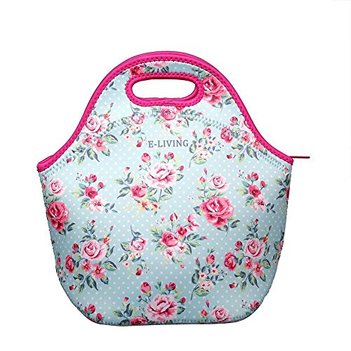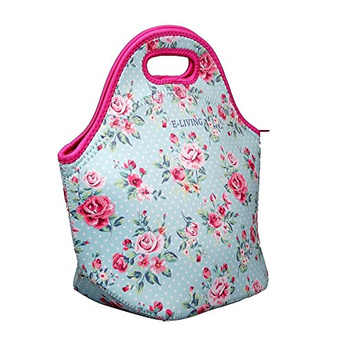 E - Living Neoprene Lunch Tote Bag - 7 Designs (USA / London / Paris / White Dots / Vintage Roses) (Vintage Roses )