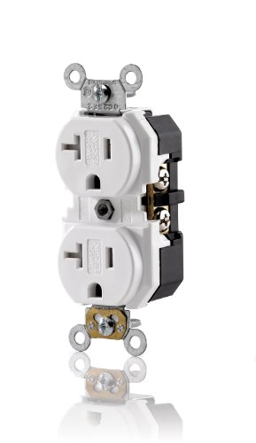 Leviton TBR20-W 20-Amp, 125-Volt, NEMA 5-20R, 2P, 3W, Tamper-Resistant, Duplex Receptacle, Commercial Grade, Self Grounding, White
