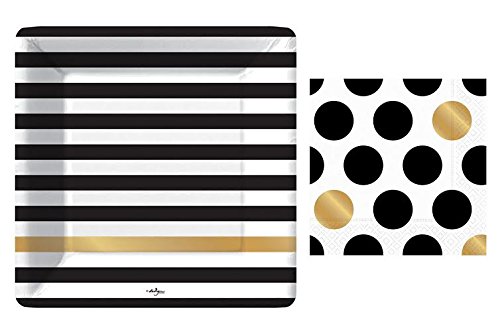 Kenzie Black and Gold Large Plates and Napkins By Design Design