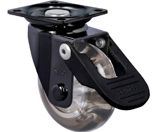 Schioppa, GLAP 210 GEL Black FPI–BR, 2" (50 mm) Swivel Brake Caster, Non-Marking Polyurethane Whl, 90 lb, Plate 1-21/32 x 1-21/32" (BH 1-1/4 x 1-1/4")