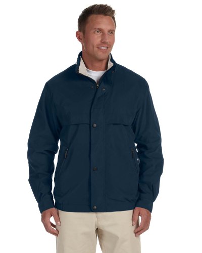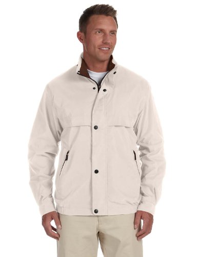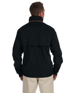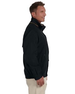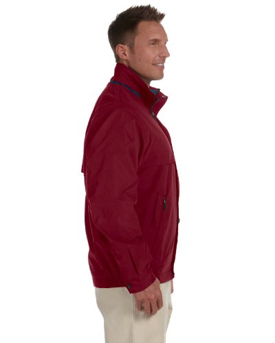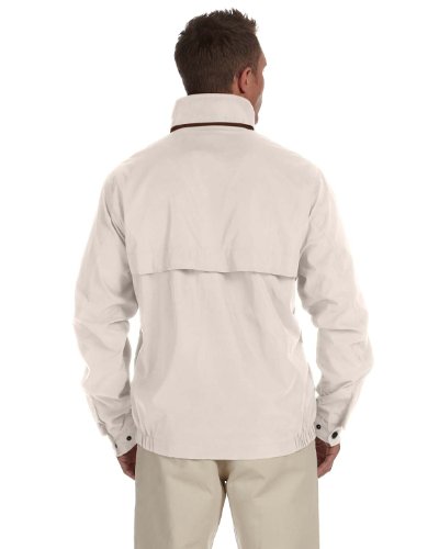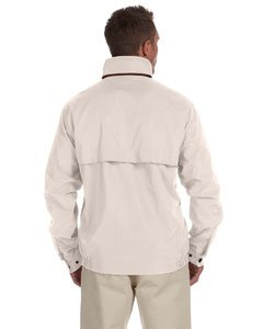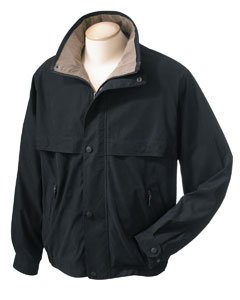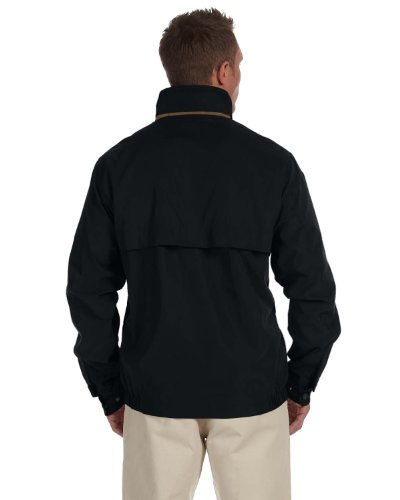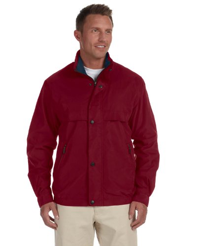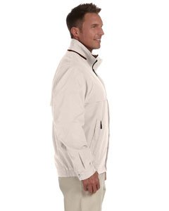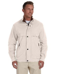 Product Description 85% polyester, 15% nylon, Water-repellent, wind-resistant, Snap storm placket over the full-zip closing and elastic waist, Vented yoke adds breathability and allows for easy embroidery access, Inside zippered security pocket, Contrast color in lining and collar. 0