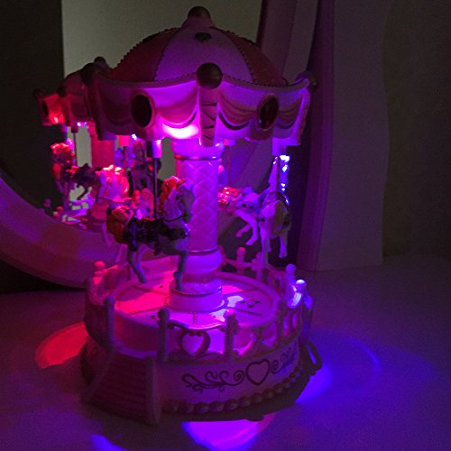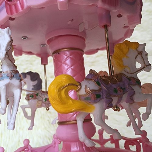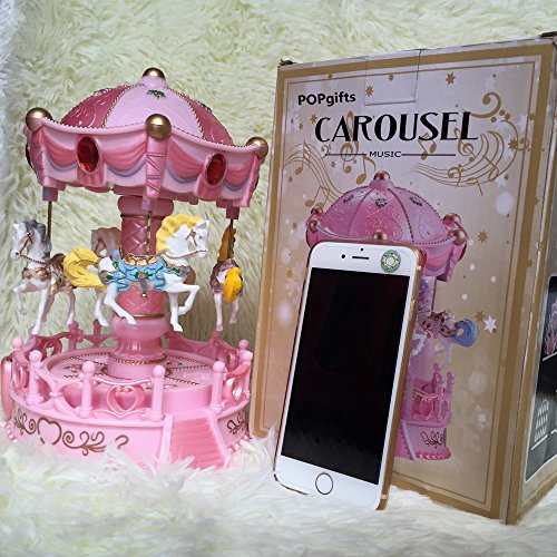 - Title : POPgifts Laxury Carousel Music Box,4-Horses Rotate and Automatic Lifting,Korea Romantic Park Design,Pink