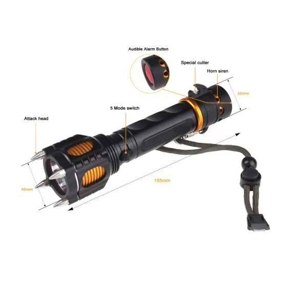 상품 내용 우리의 스토어 2016 새로운 LED 전술 손전등 T6 자기 방어 토치 램프 2000LM 모드 테르 점멸 경보 칼 Emergencie ![]()