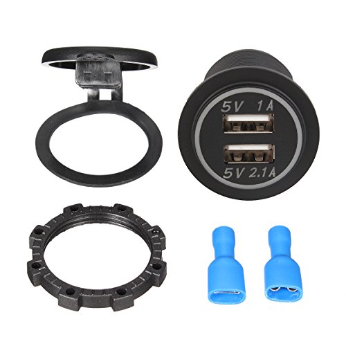 - PACKAGE INCLUDED- 1 x Blue LED Dual USB(1A+2.1A) Car Charger Adapter, 2 x Insulated Terminals.