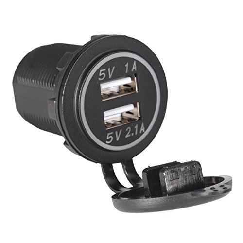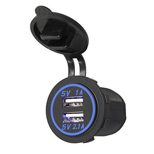 ELUTO Dual USB(1A+2.1A)Car Charger Blue LED Car Socket Charger Power Adapter Outlet for Car Boat Motorcycle Marine UTV/ATV RV Truck Camper Vehicles