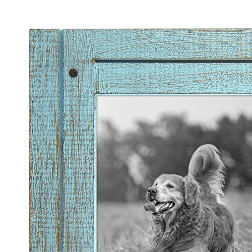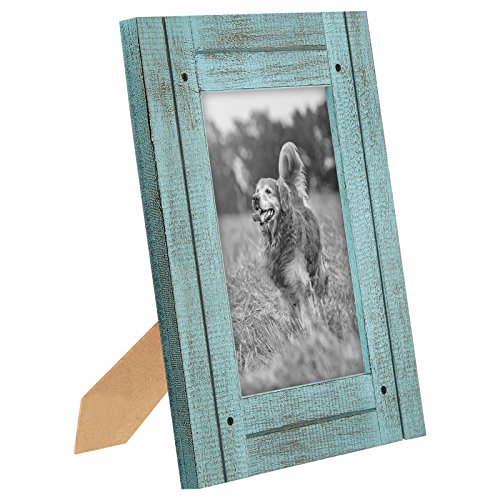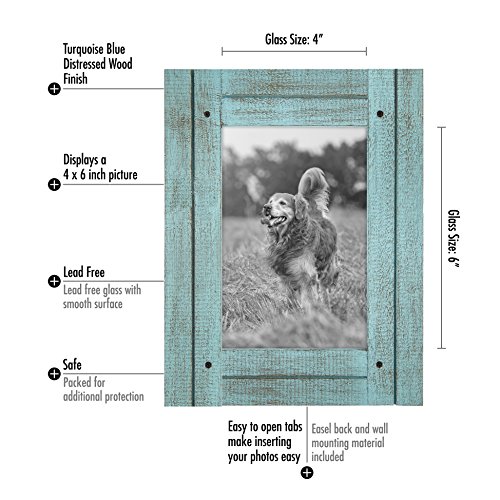 4x6 Turquoise Blue Distressed Wood Frame - Made to Display 4x6 Photos - Ready To Hang or Stand With Built in Easel