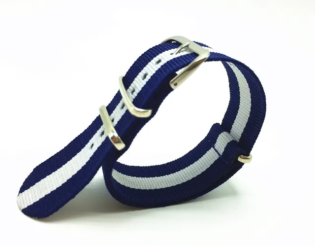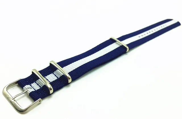 24 미리메터 나토 g10 네이비 블루 화이트 스트라이프 육군 시계 스트랩 밴드 스포츠 손목