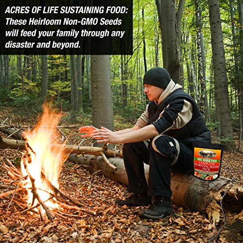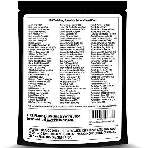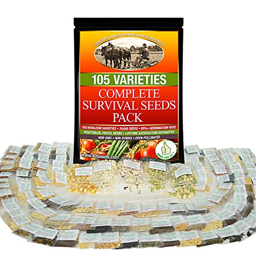 Survival Seeds Best For Fruit Herb and Vegetable Storage Bank - Emergency Doomsday Gardens Supplies - 105 Variety Heirloom Non GMO- Over 19,000 Seeds - High Germination Success - Made In USA