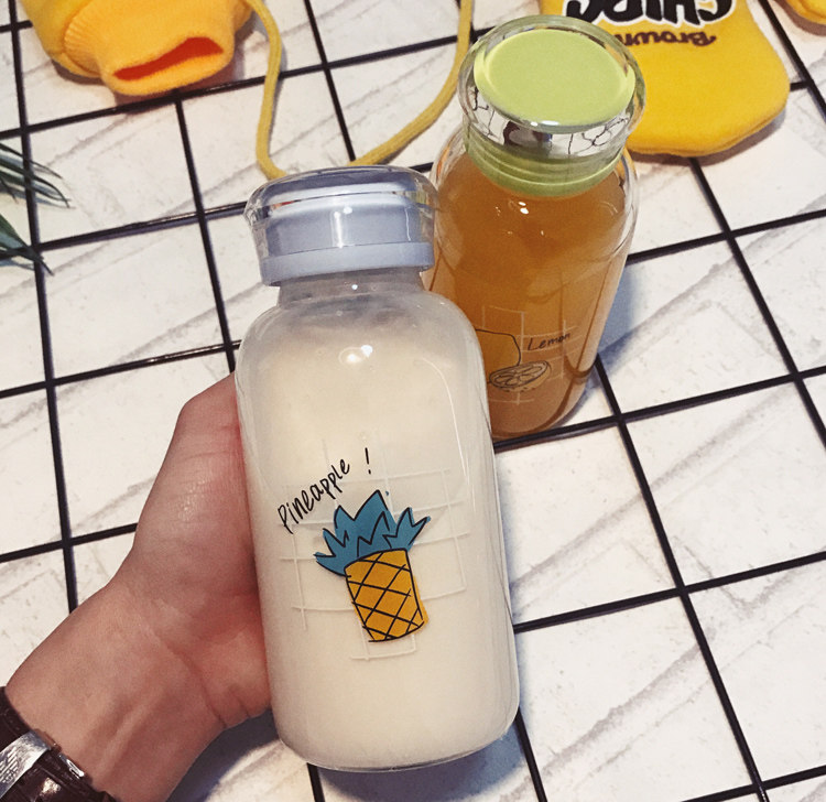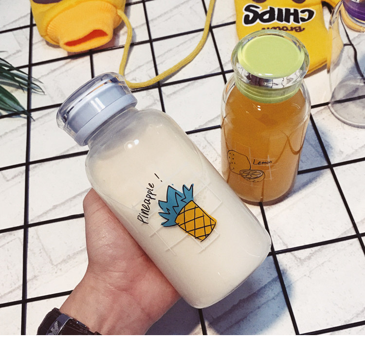 韩国可爱玻璃杯韩版女学生水杯创意便携杯子清新简约随手柠檬杯子