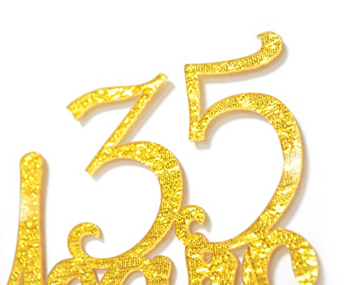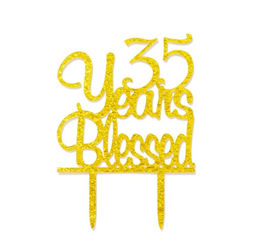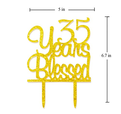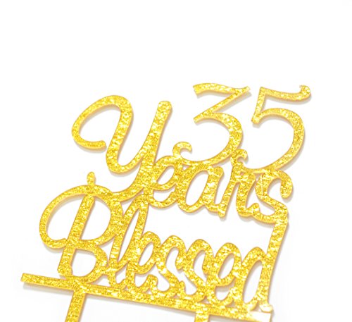 35 Years Blessed Acrylic Cake Topper 35th Birthday Anniversary Party Decoration Supplies(Gold)