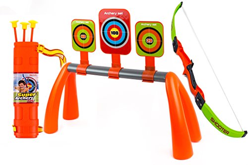 -. Binding : Toy -. Brand : Toysery -. EAN : 0619730117294 -. Feature : ► ARCHERY TOY BOW AND ARROW SET: This bow & arrow is designed as a toy with soft shooting power, is it safe to play around indoor & outdoor. / ► Arrows comes with suckers which are safer for children and ideal for sticking to window and other flat surfaces / ► HIGH QUALITY DURABLE PLASTIC: Made with a durable ABS plastic, able to withstand multiple hours of use without breaking. Great beginner archery bow to start practice shooting. / ► GREAT KIDS GAME: The Toysery Bow & Arrow set is operated almost like a real bow. Perfect for teaching kids how to safely shooting archer ywith 3 Targets Quiver Outdoor -. IsAdultProduct : 0 -. Label : Toysery -. Manufacturer : Toysery -. MPN : 76 -. PartNumber : 76 -. ProductGroup : Toy -. ProductTypeName : TOYS_AND_GAMES -. Publisher : Toysery -. Studio : Toysery -. Title : Toysery Kids Archery Bow and Arrow Toy Set with 3 Targets Quiver Outdoor Garden Fun Game. -. UPC : 619730117294
