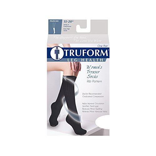 Truform Compression Socks for Women,15-20 mmHg, Ribbed Pattern, Black, X-Large