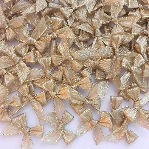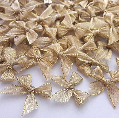 100 Pcs Mini Gold Ribbon Bows Crafts Party Decoration