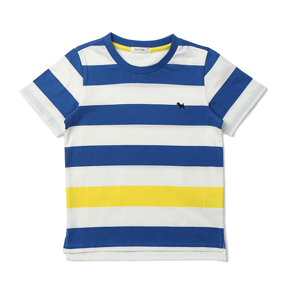 볼드한 컬러 스트라이프의 티셔츠입니다. 다른 컬러의 스트라이프를 매치하여 심플하면서 시원한 느낌을 줍니다.