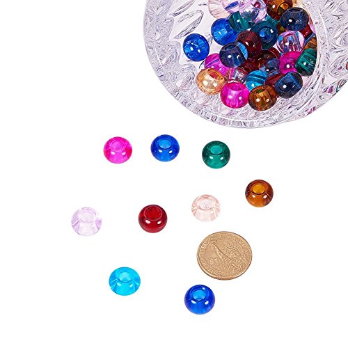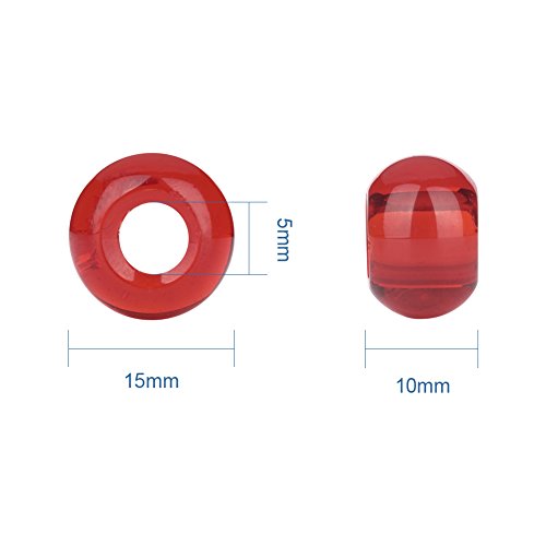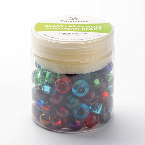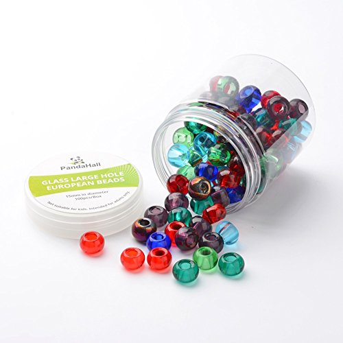 Pandahall 100pcs Glass European Beads, Large Hole Beads, No Metal Core, Rondelle, Mixed Color, 15mm in Diameter, 10mm Thick, Hole: 5mm