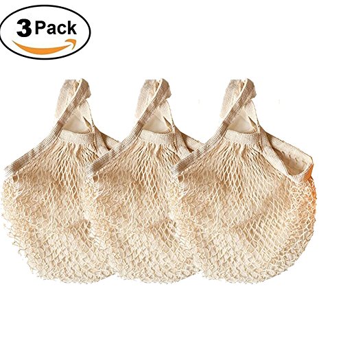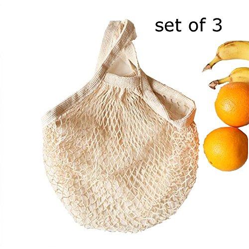 Ahyuan Reusable Grocery Bags Cotton String Bag Mesh Bags Set of 3
